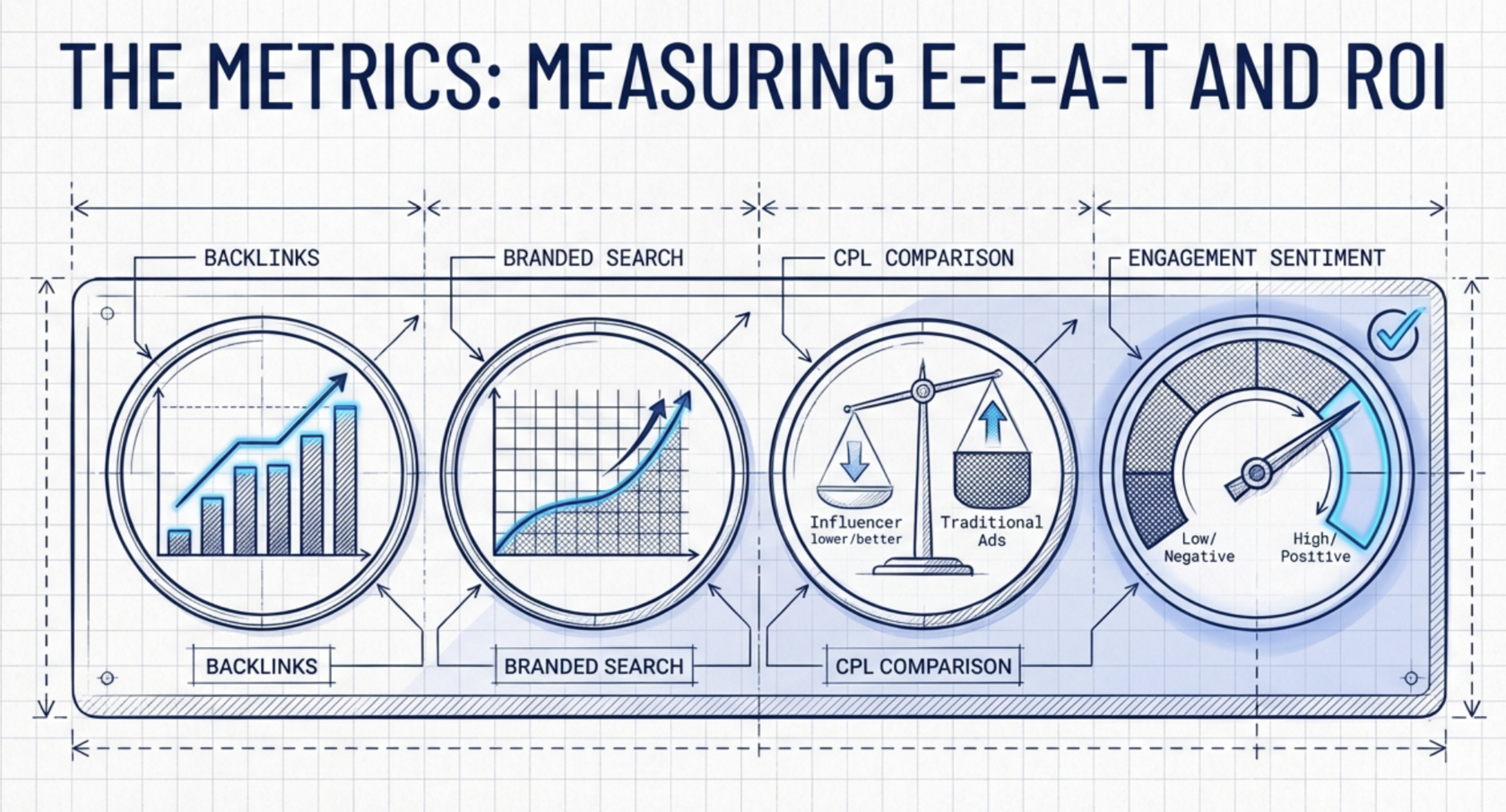 The SEO impact is measured through "Branded Search Volume"—the number of people searching for your brand name after seeing an influencer's content. Additionally, high-quality mentions and links from an influencer's blog or social profiles contribute to your site’s domain authority and E-E-A-T profile.