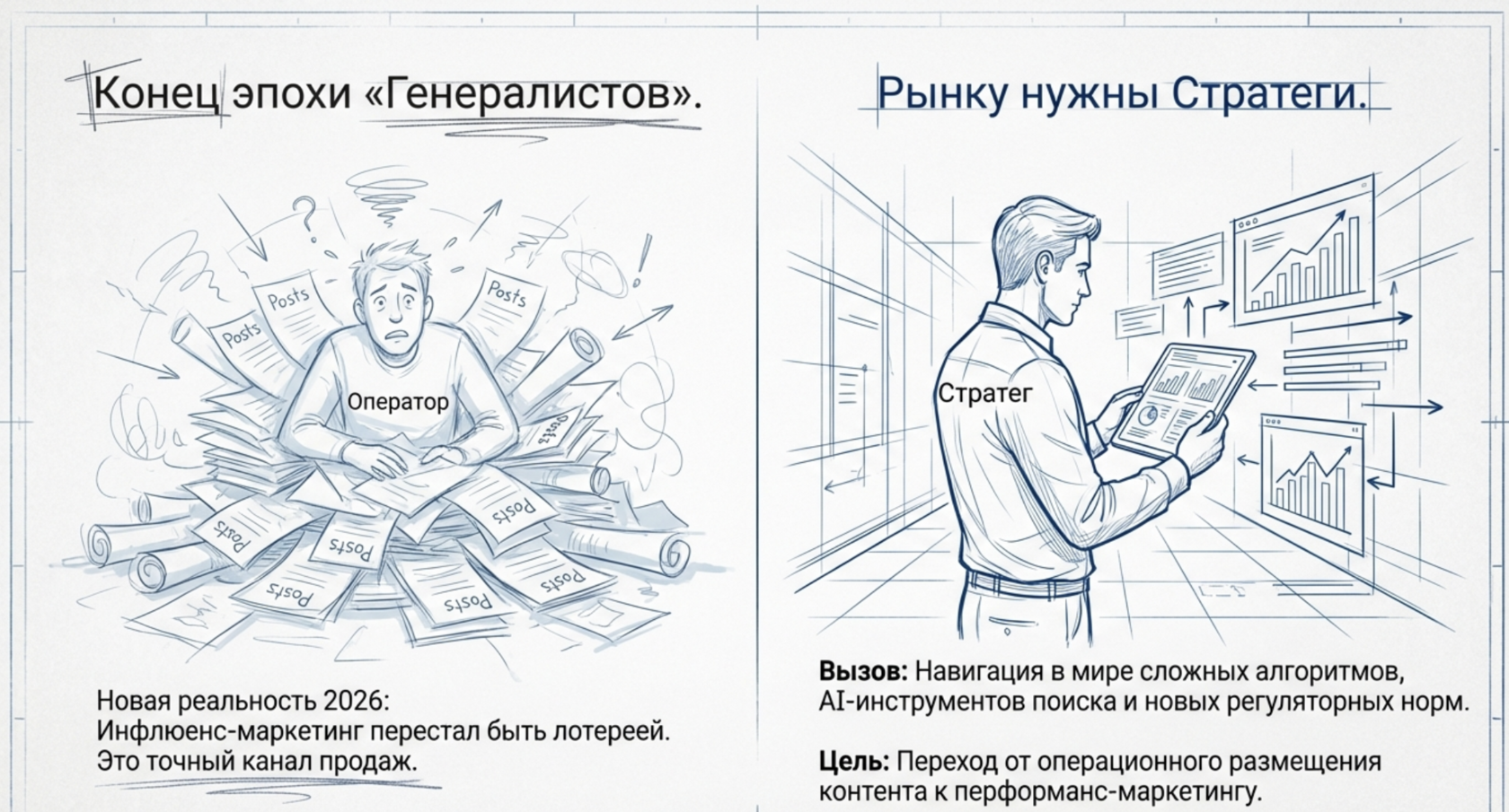 В 2026 году работа с лидерами мнений окончательно трансформировалась из имиджевого инструмента в канал с четко прогнозируемой доходностью. Бренды больше не могут позволить себе нанимать операторов-универсалов, чья деятельность ограничивается рассылкой пресс-релизов. Современный рынок требует стратегов, способных использовать инструменты искусственного интеллекта для глубокого анализа и выстраивать аутентичные партнерства, приносящие измеримую прибыль. Выбор квалифицированного специалиста становится критическим фактором успеха, поскольку именно он отвечает за навигацию в сложных алгоритмах социальных платформ и соблюдение постоянно меняющихся законодательных норм.
